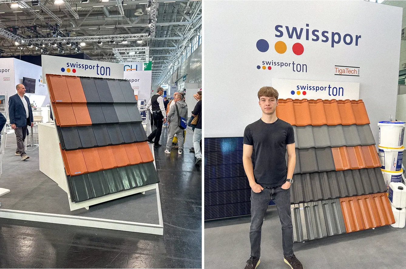 Одним із найбільш цікавих для нас стендів став Swissporton. Нам було особливо важливо побачити нові моделі не в теорії, а наживо у фізичній презентації, в реальному масштабі, з реальними кольорами та текстурами.