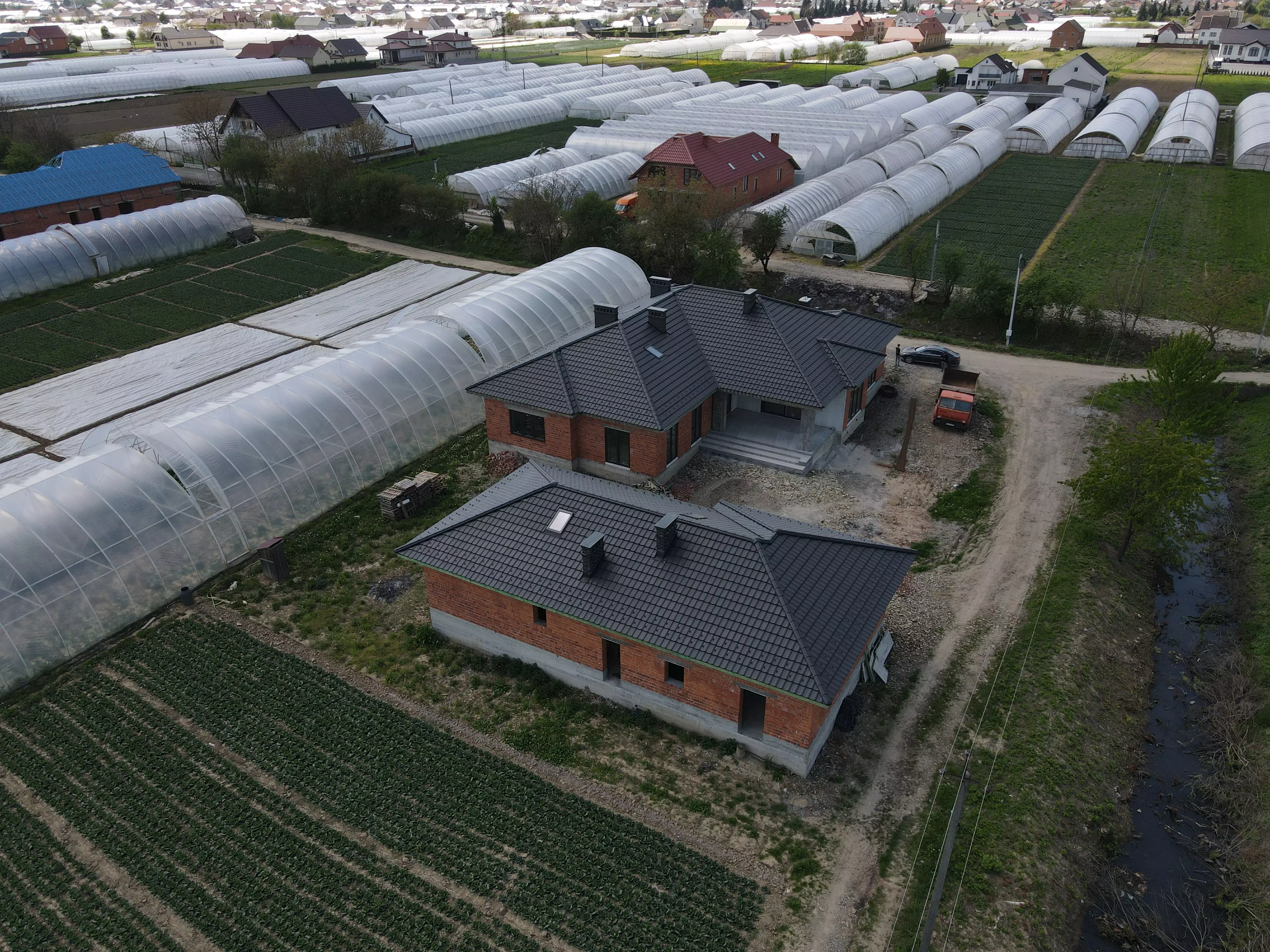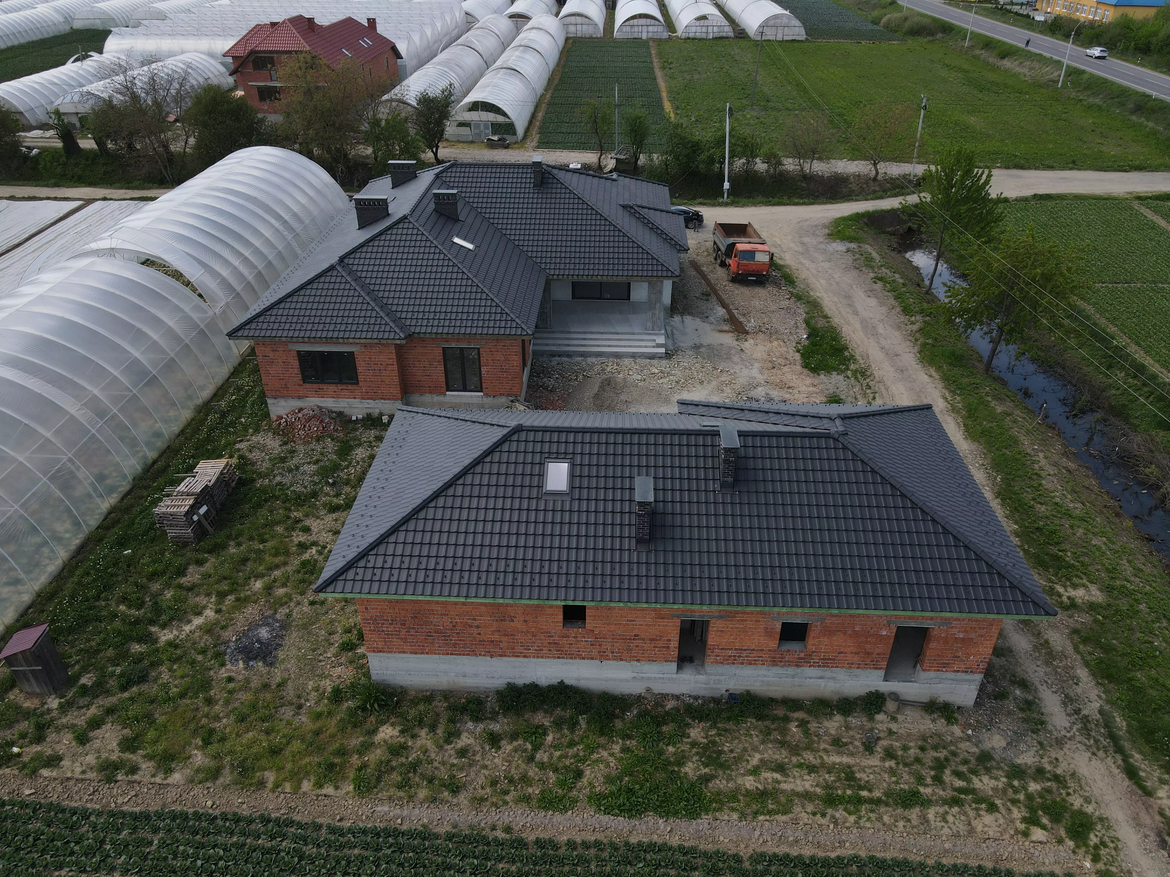 Для приватного будинку у селі Заріччя ми виконали проектування та постачання покрівлі з керамічної черепиці KODA Чорна Матова. Монтаж було реалізовано за європейськими технологіями з використанням мембрани SolidBLACK та встановленням надійного снігозахисту по периметру даху.