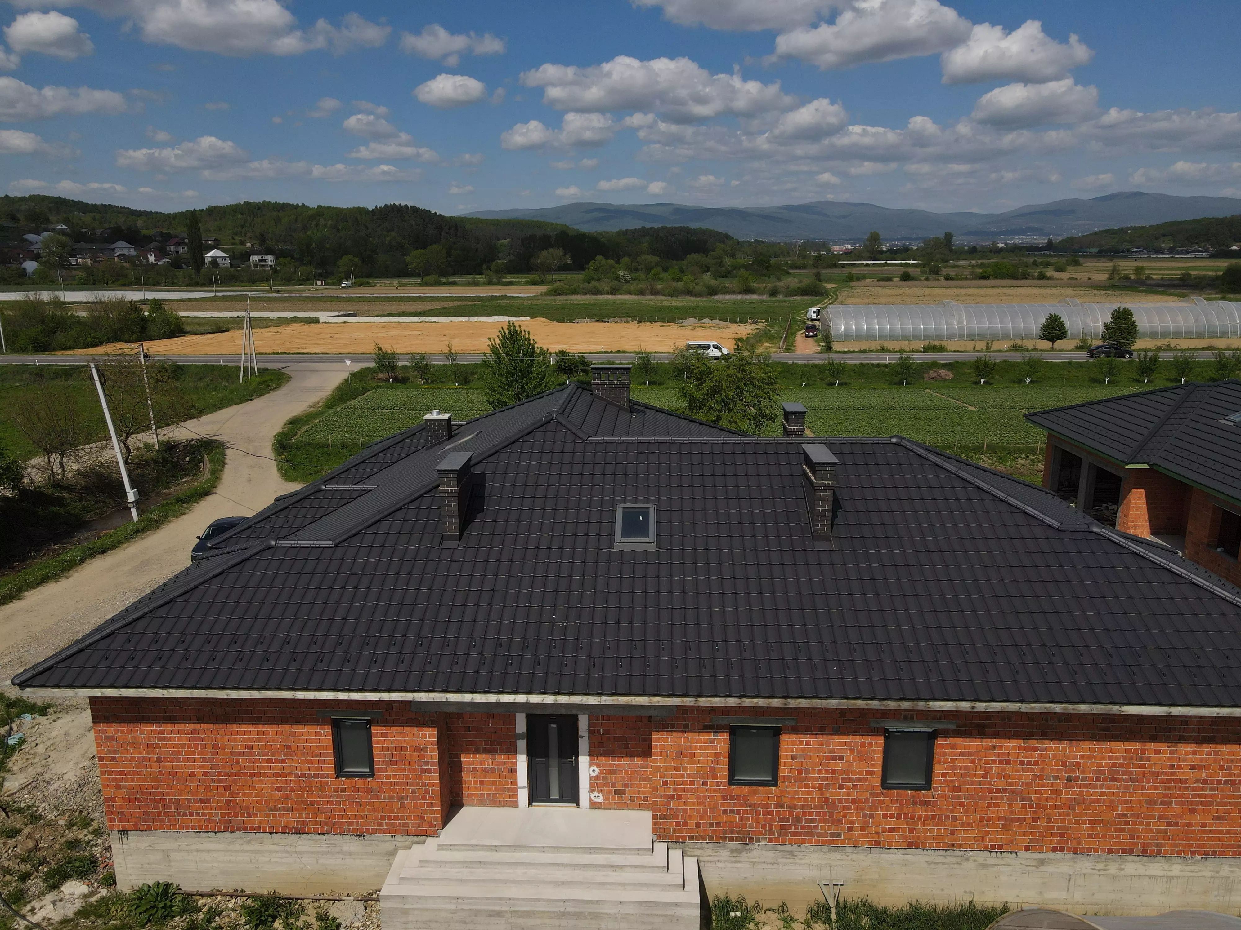 Результатом стала сучасна та довговічна покрівля, яка поєднує естетику чорного матового відтінку, високу якість керамічної черепиці та надійний захист від атмосферних впливів.