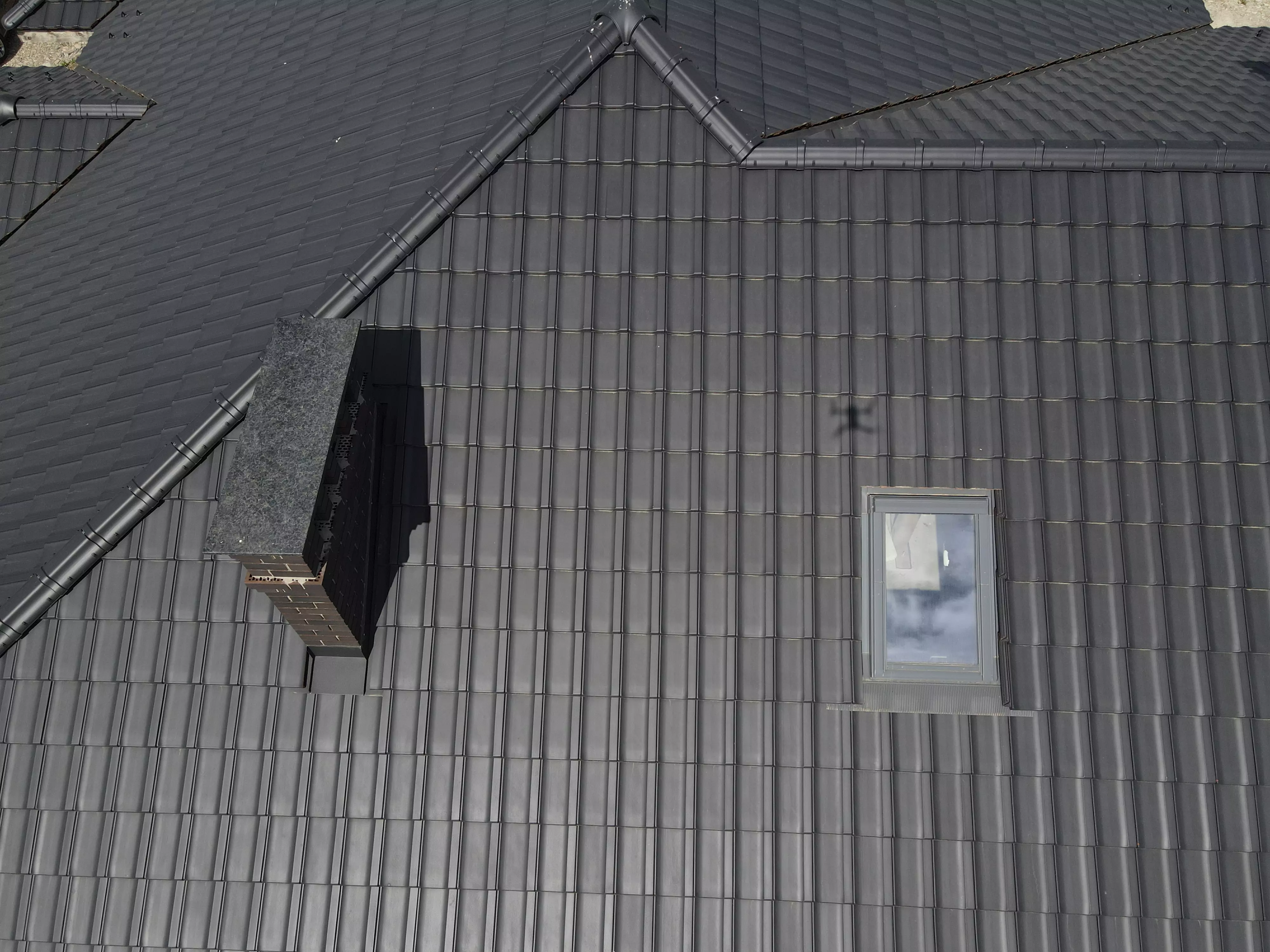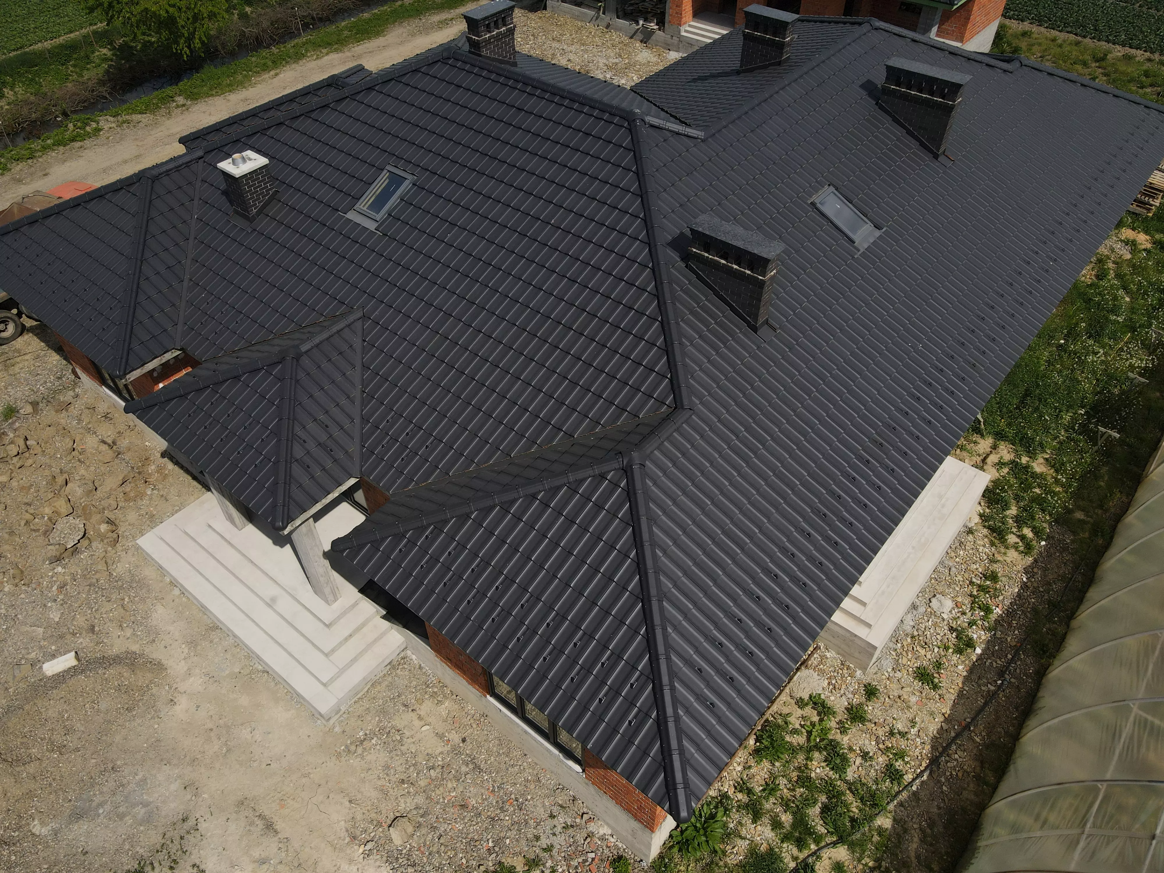 Позачасова форма та насичений чорний матовий відтінок підкреслюють архітектуру будинку, надаючи йому одночасно сучасного та елегантного вигляду. Завдяки великому формату та економній витраті (приблизно 9 шт./м²) монтаж відбувається швидко й ефективно. Надійні замки та система водовідведення гарантують герметичність, а стійкість до морозу, вологи й ультрафіолету забезпечує довговічність даху. Ідеальне рішення для тих, хто цінує якість, практичність і стиль.